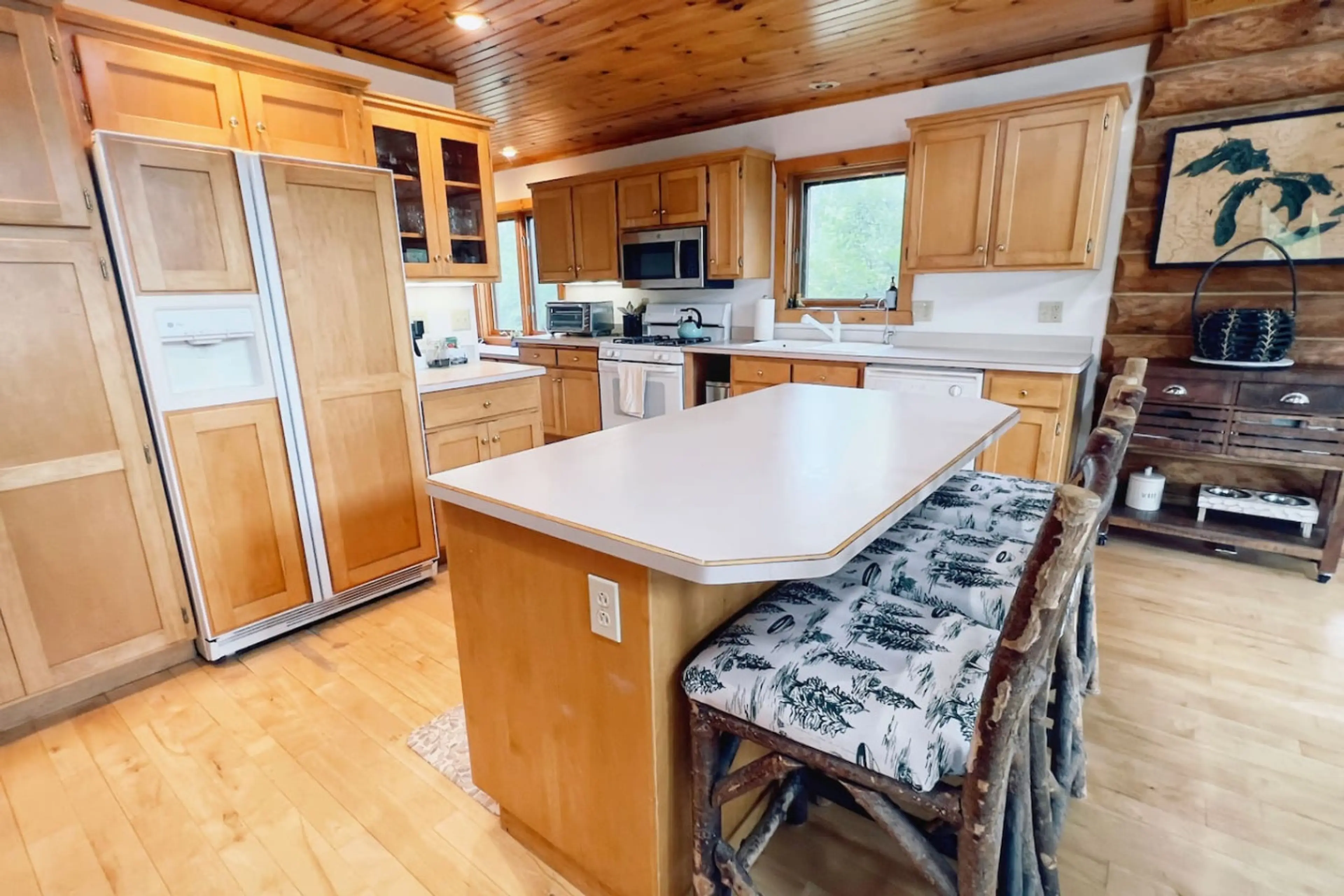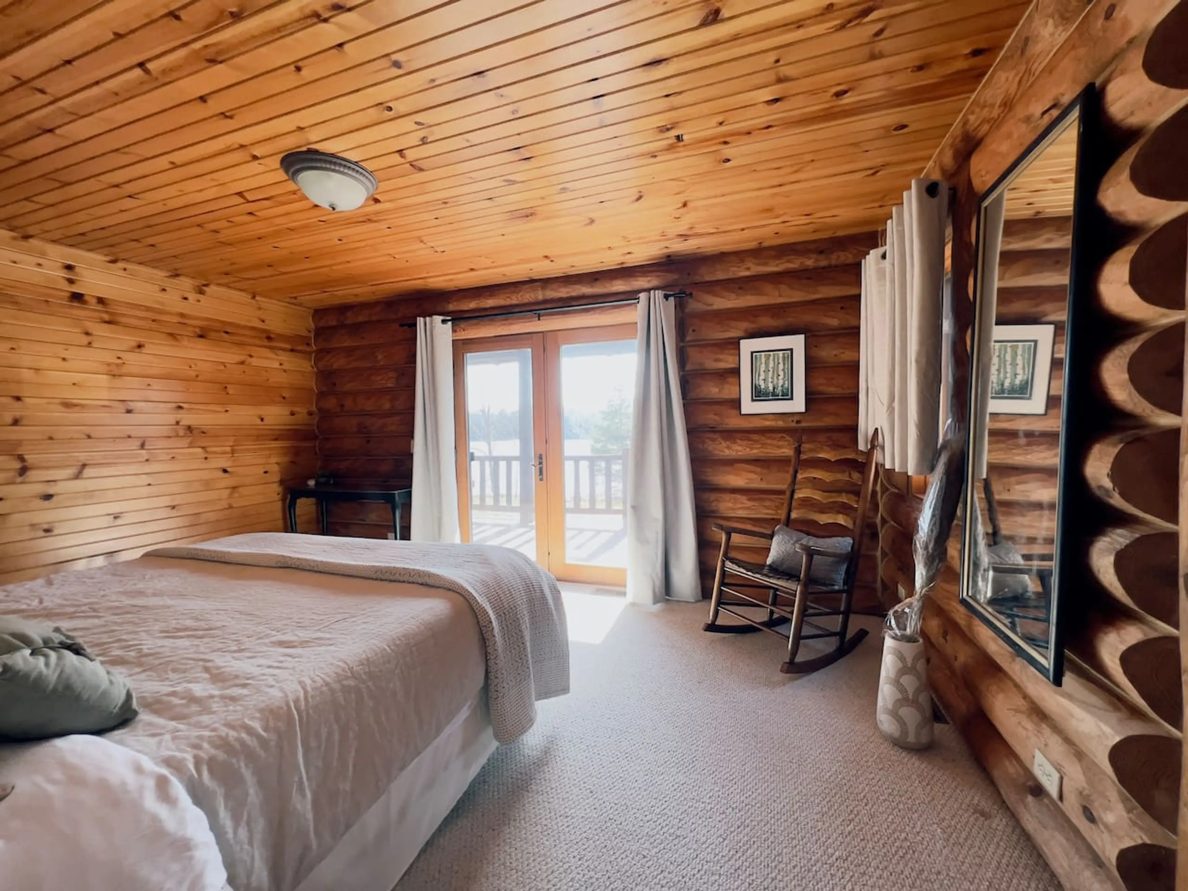Tucked on a private peninsula in Wisconsin’s Kettle Moraine, Birchwood Log Cabin is a quiet 4-bedroom, 2-bath retreat with stunning lake views and space for up to 14 guests. Enjoy a wraparound deck, wood-burning fireplace, and open-concept great room for cozy nights in. While our lake is view-only, ...